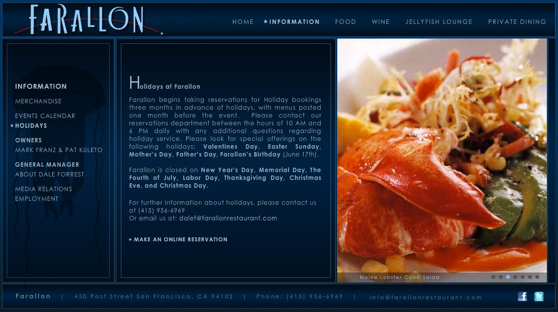 Farallon Restaurant | Coastal Cuisine by Chef Marc Franz | Located in San Francisco near Union Square. | All Rights Reserved 2011 Farallon Restaurant.